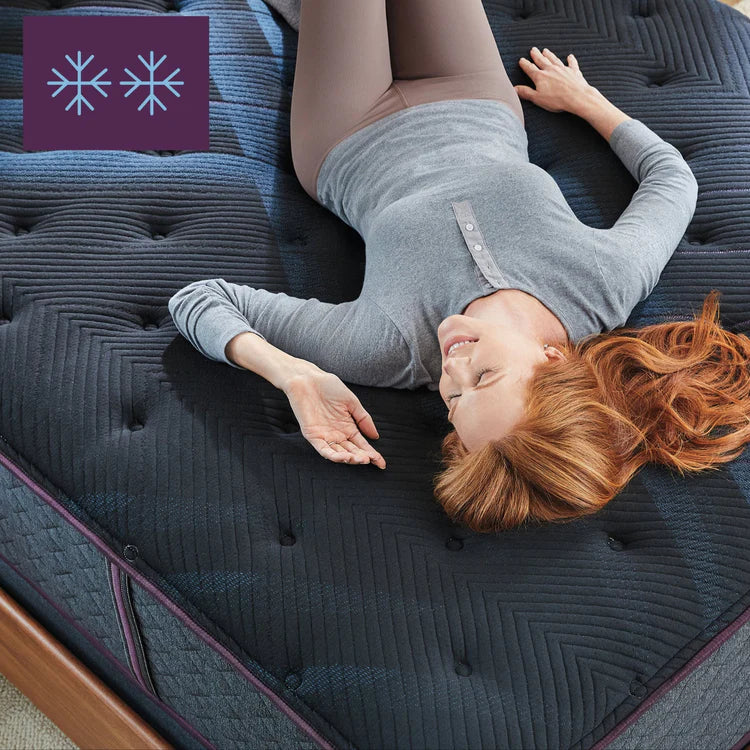 Temperature-regulating components and materials draw heat away from the body to create a cool and comfortable sleep surface.